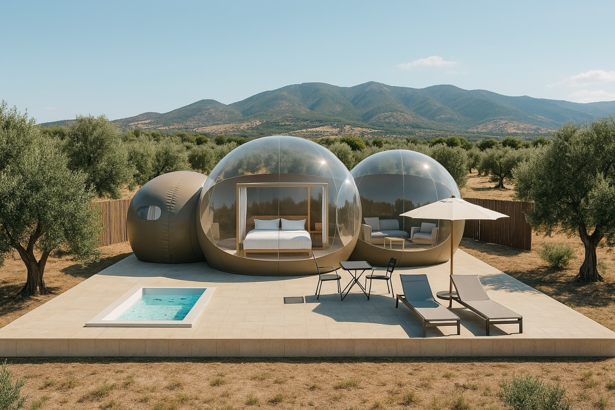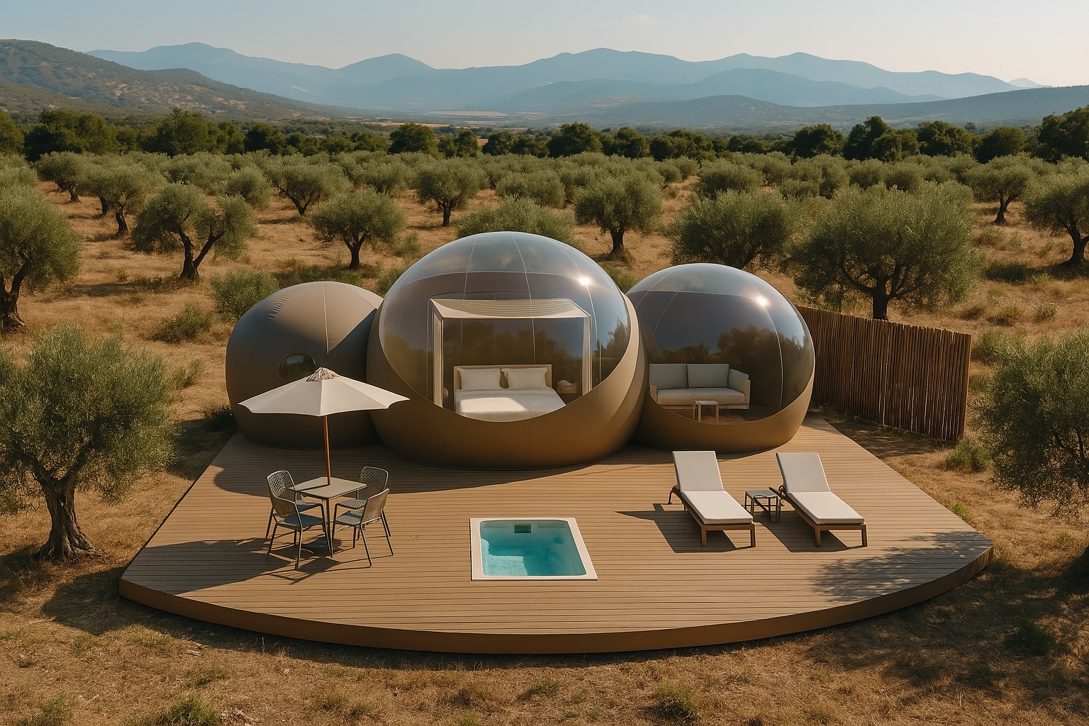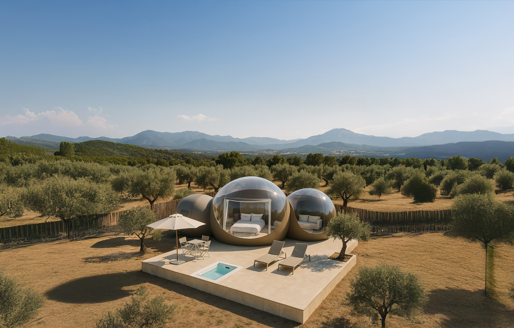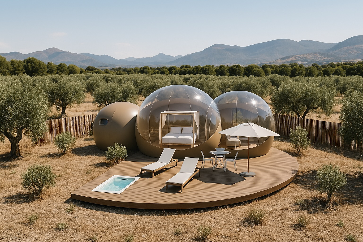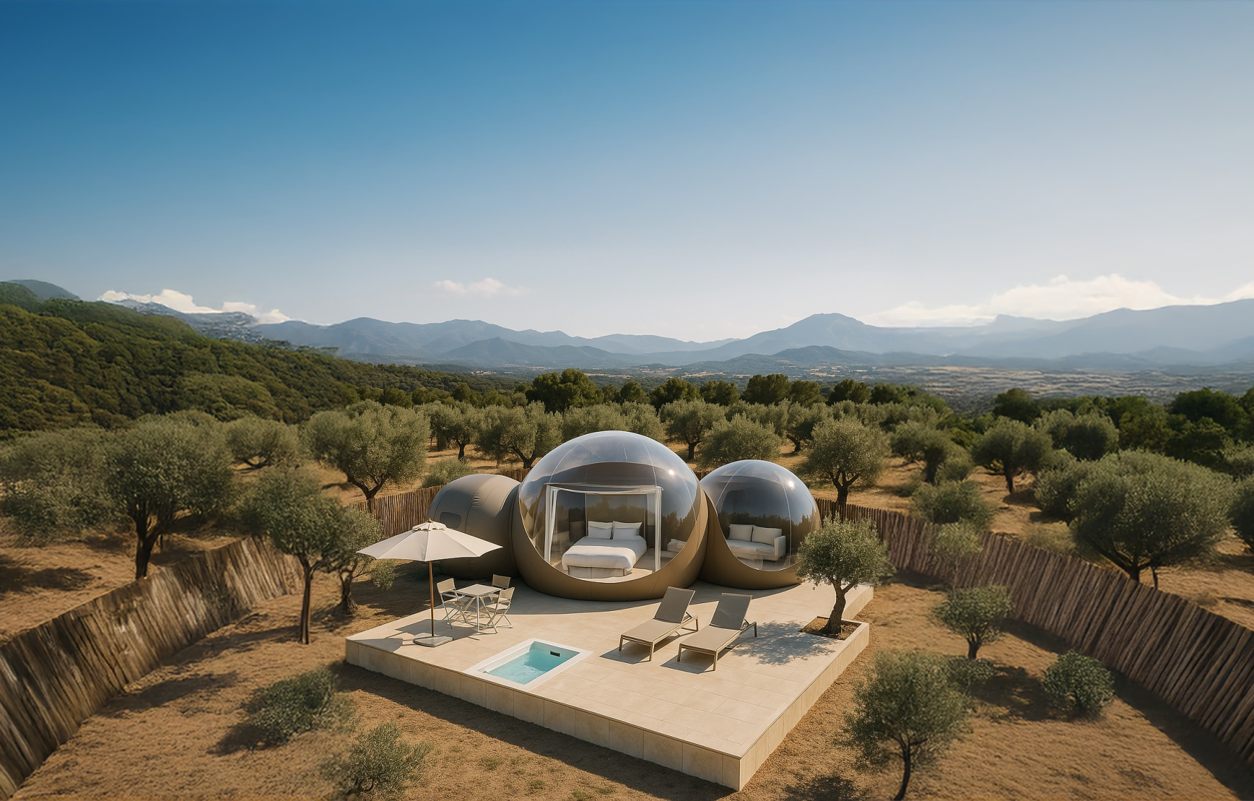 Descubre a continuación cómo es nuestro hotel burbuja en Toledo, con sus habitaciones suite, equipamiento disponible, servicios exclusivos y el bello y tranquilo entorno que nos rodea.