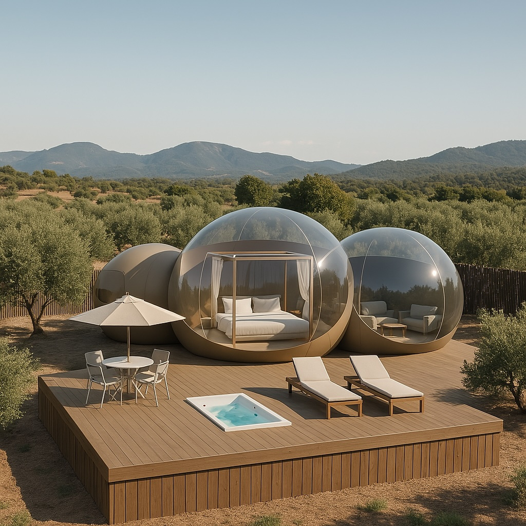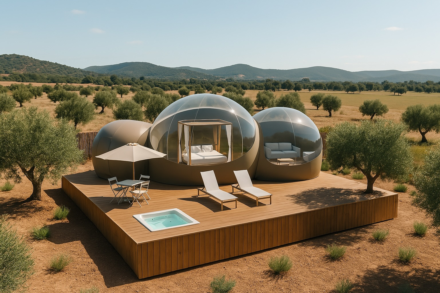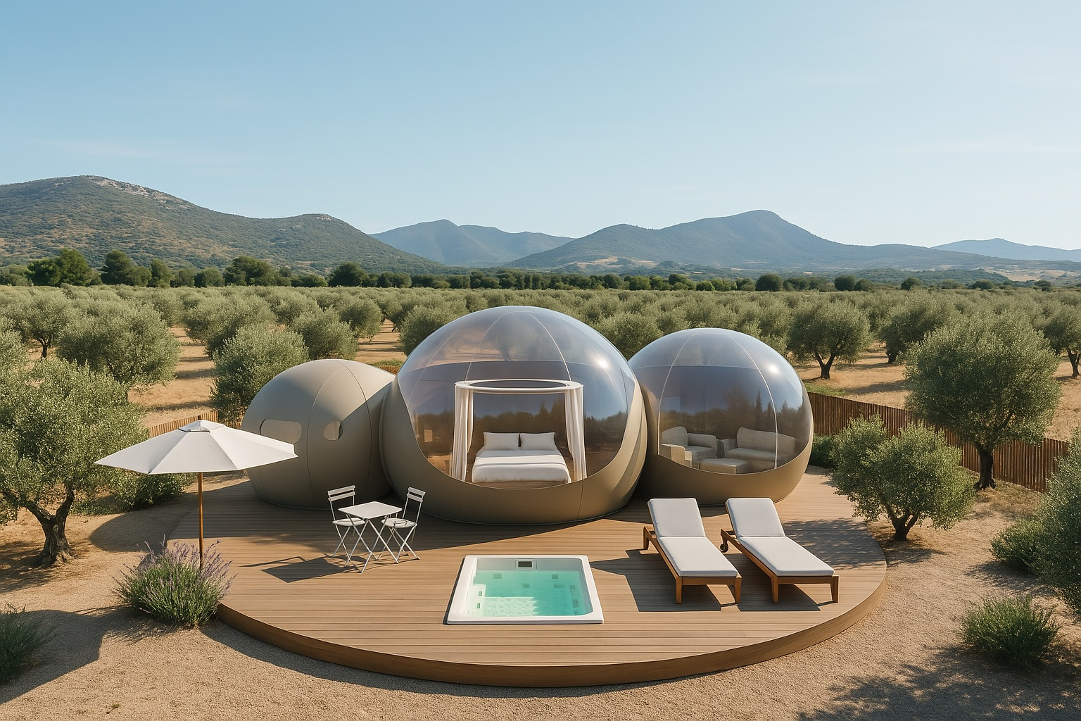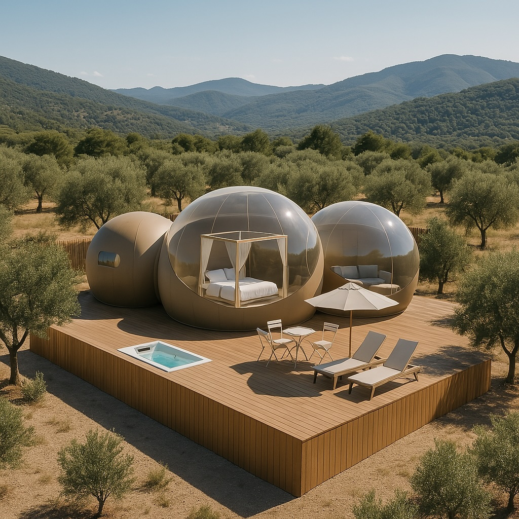 Descubre a continuación cómo es nuestro hotel burbuja en Toledo, con sus habitaciones suite, equipamiento disponible, servicios exclusivos y el bello y tranquilo entorno que nos rodea.