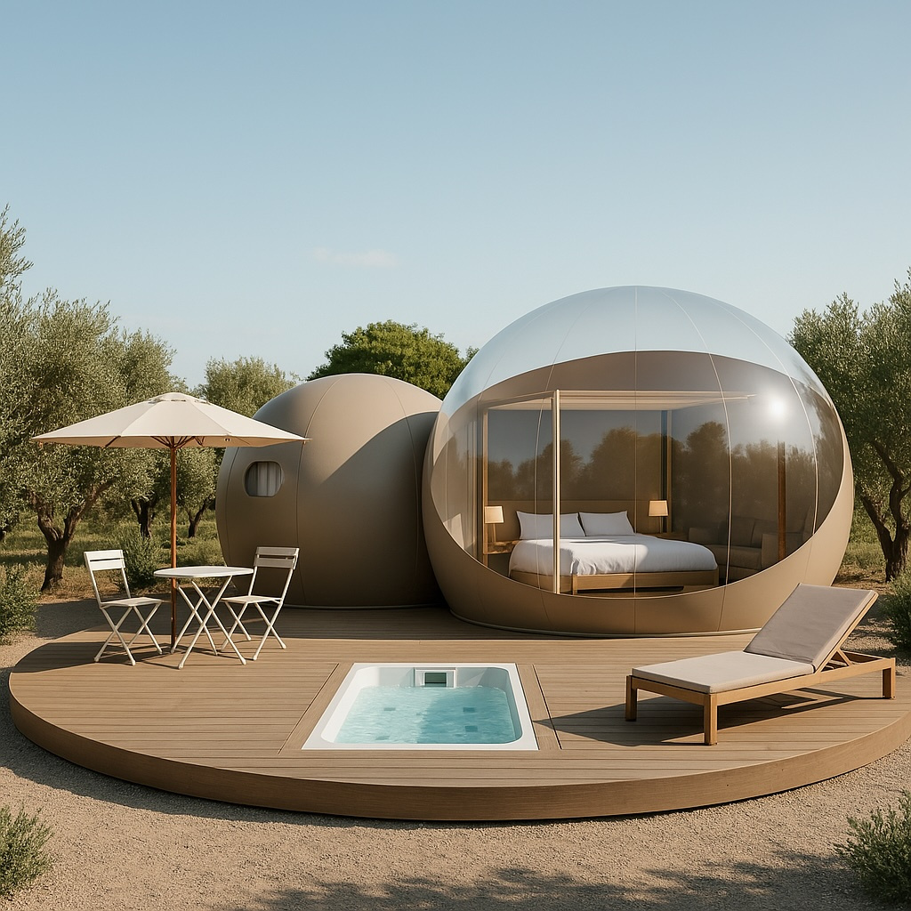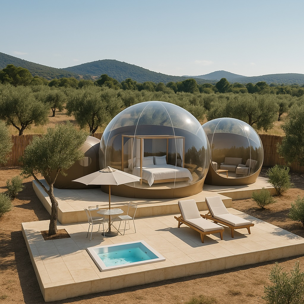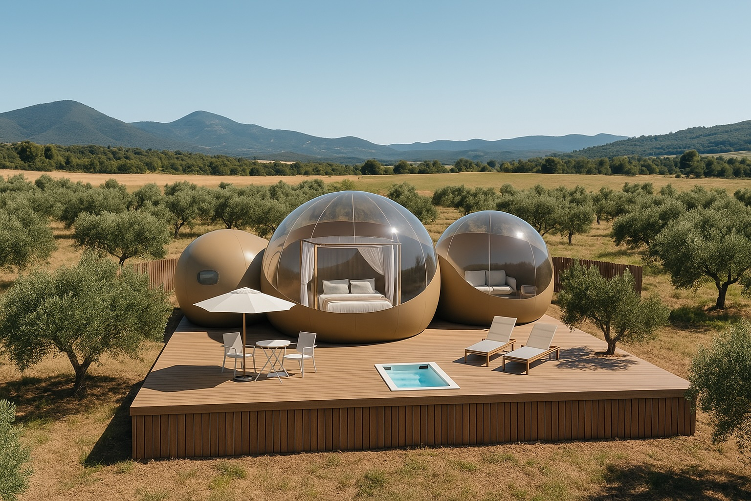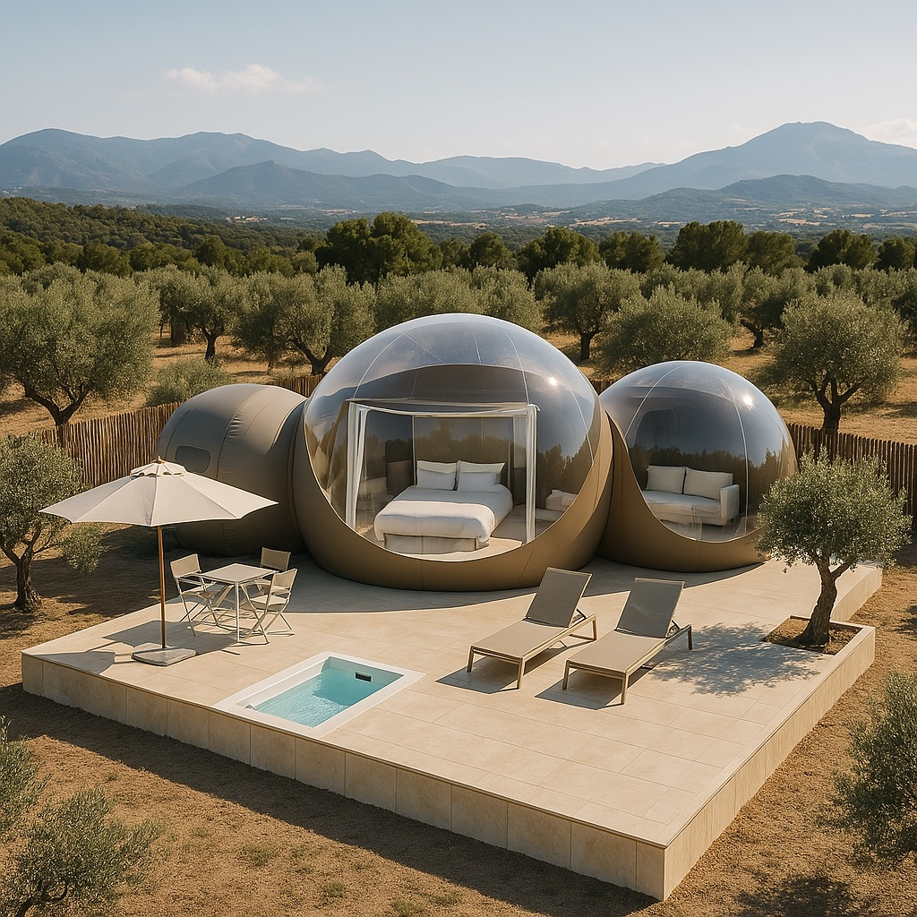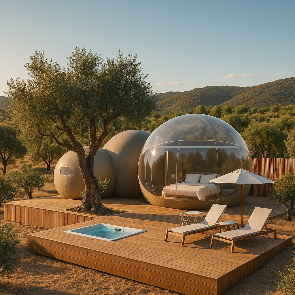 Descubre a continuación cómo es nuestro hotel burbuja en Toledo, con sus habitaciones suite, equipamiento disponible, servicios exclusivos y el bello y tranquilo entorno que nos rodea.