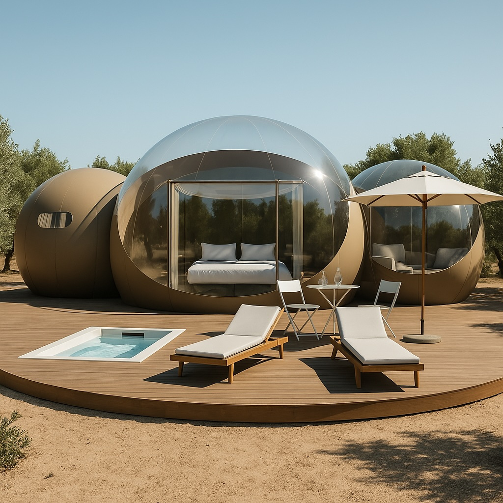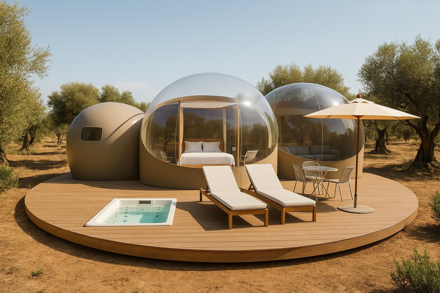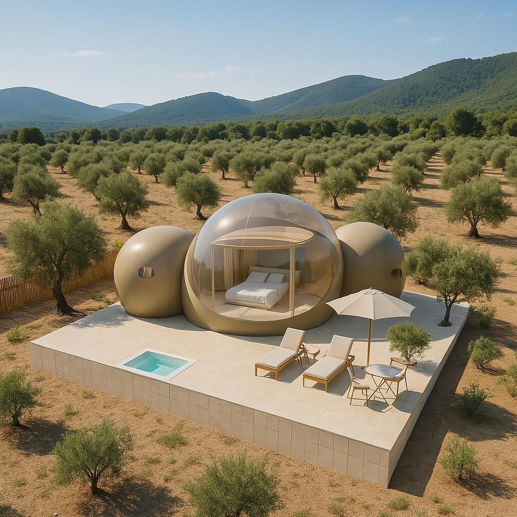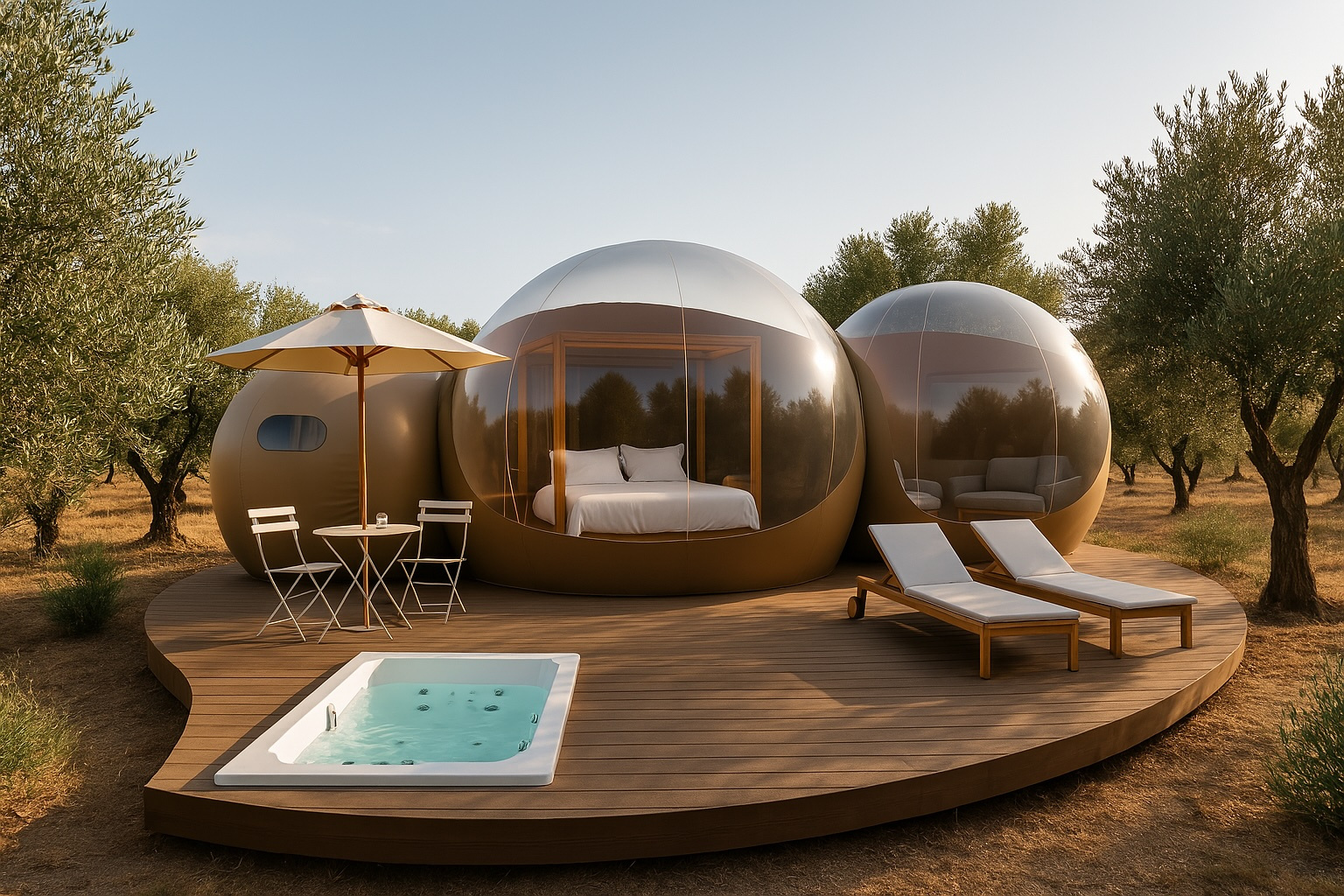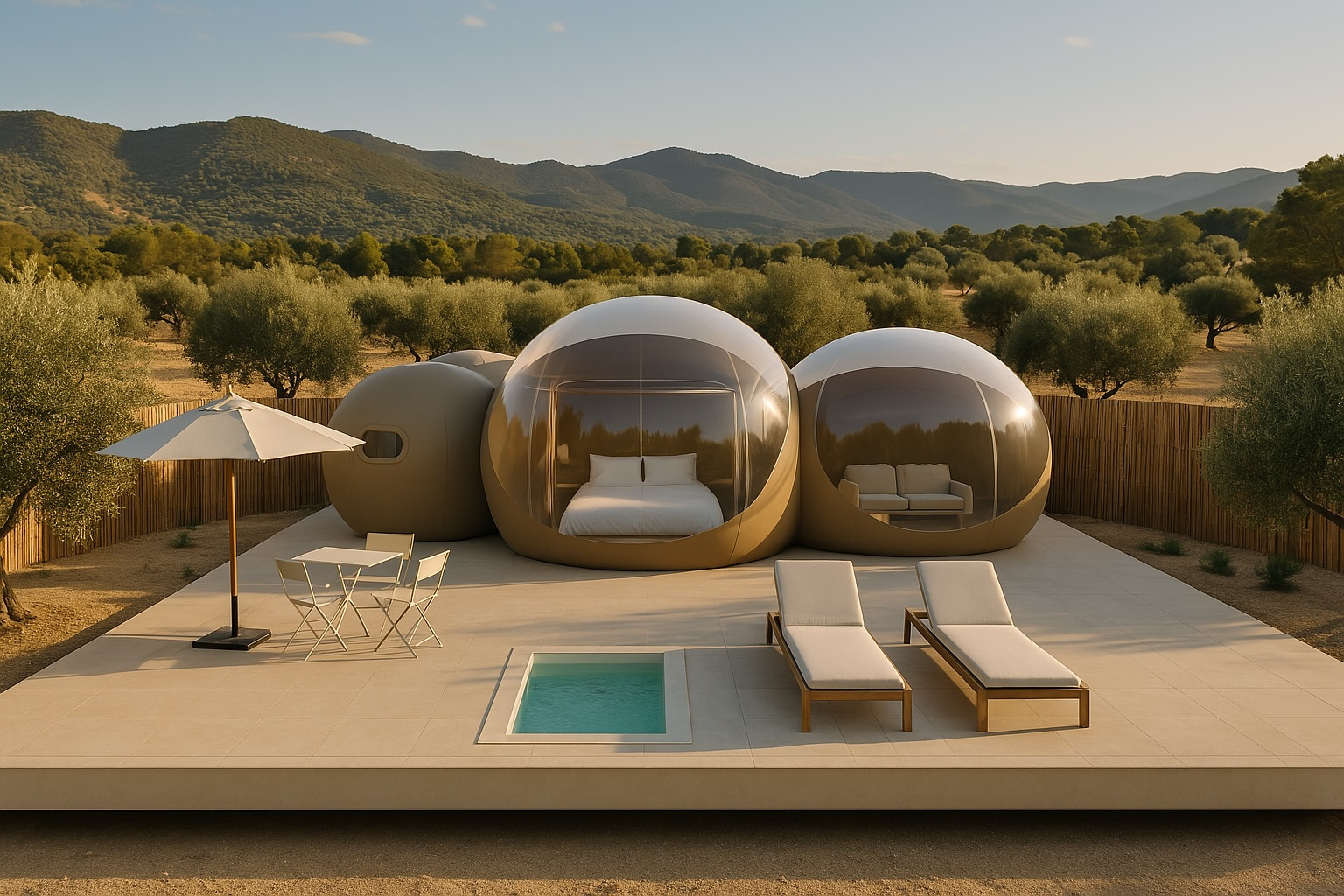 Descubre a continuación cómo es nuestro hotel burbuja en Toledo, con sus habitaciones suite, equipamiento disponible, servicios exclusivos y el bello y tranquilo entorno que nos rodea.